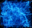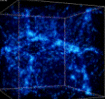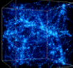الصور الموجودة في الاسفل توضح كيفية تشكيل العناقيد والخيوط في نموذج يبين تأثير المادة السوداء الباردة بوجود الطاقة الغامضة. وتوضح الصور الست تطور التراكيب في مساحة 140 مليون سنة ضوئية، في شكل مكعب من الانزياح الاحمر Redshift يساوي 30 في بدايات الكون عندما كان عمره أقل من 1 % من عمره الحالي(من اليسار) إلى العصر الحالي حيث z =0.