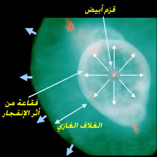 أبيض من خلال ستار من المادة المطرودة. أما الضوء