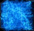 في العصور الأولي (z =30)، توزيع المادة يبدو موحدا في كل مكان. هذا يعود إلى أن التغيرات في البداية ما زالت محدودة جدا، وبينما يستمر الوقت، تزداد التقلبات والتغيرات وتؤثر في تكون تراكيب لتجمعات أصغر والتي لها احجام وكتل مشابهة لتلك المجرات في الخيوط الكبيرة. ولاحظ كيف أن الخيوط التي تغطي كامل المكعب من اليسار إلى اليمين وكم يصبح واضحا أكثر فأكثر مع الوقت. ولاحظ أيضا أنه لايوجد تغير كبير بين z =0.5 و z =0 (في الصورتين الاخيرتين). ويعود سبب هذا بأن توسع الكون في هذه الفترة هو في مرحلة التعجيل حيث تصبح الطاقة الغامضة مهيمنة عند z <1. وعلى نطاق واسع فإن الجاذبية لا تستطيع التنافس مع الطاقة الغامضة في السيطرة على التعجيل في التمدد وتوقف نمو التراكيب. ومع توقف إنكماش التراكيب الواسعة، فهو في الحقيقة أن الكون يتوسع ولكن يبدوا لنا جامدا في ما يخص نظرائنا أو في حدود إرتباطنا بالتجمعات التي حولنا.