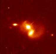 وهو مندمج مع مجرة لامعة ( تحت الكوزار مباشرة)،