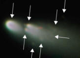مع كوكب المشتري، عندها حدث له تفكك إلى عدة