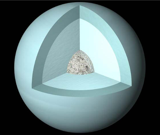 تكون في منتصف الكوكب وبالثلج بدلا من الحديد في القلب،